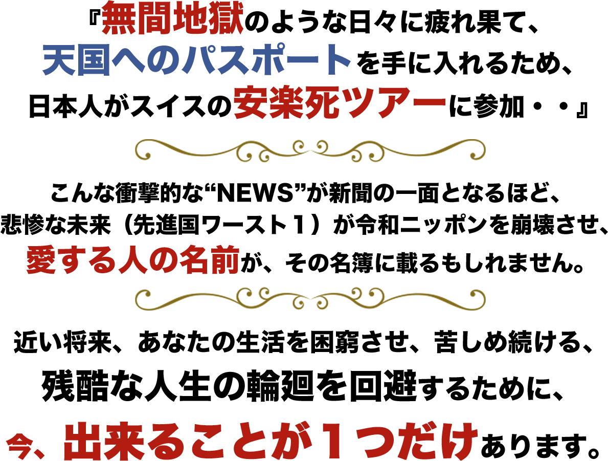 将来は安泰ですからスイスの安楽死ツアーなんか、