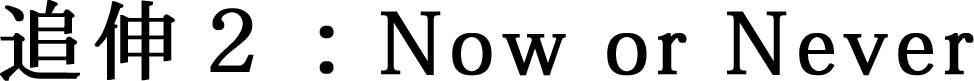 行動してくれると思いますが、人生はいつだってNow or Neverです。