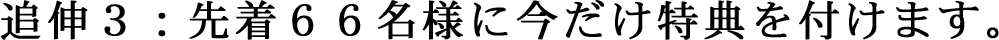 先着66名様限定ですので、早い者勝ちです。